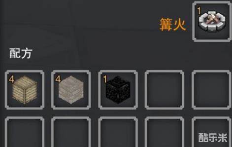 篝火的合成:圆石*4、任意木头*4、煤块*1