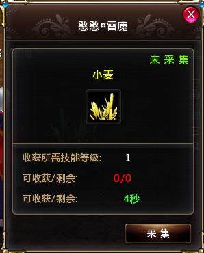4、当生产周期结束后,点击地面上的植物将弹出收获面板,成功收获后可获得原材料以及一定技能熟练度。