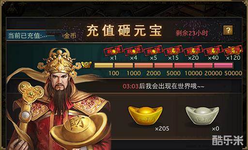 累计充值满50000金币,再送120个金元宝