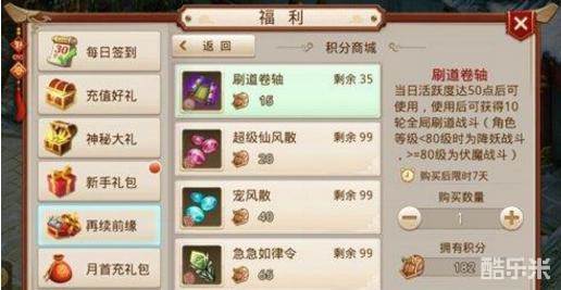 活跃达100的道友还可以来试试手气,每天可获得一次抽大奖的机会。