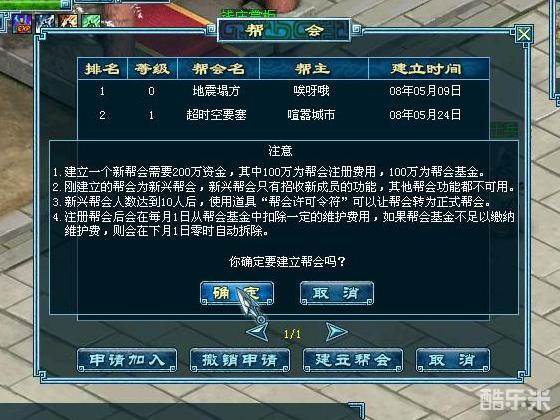 2.新兴帮会满足条件后,成为1级帮会,属于正式帮会。如果1个月没有帮会经验增长,帮会将自动解散。