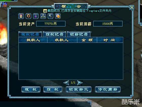 6.只有帮主可以修改月薪,帮会成员可以为公会捐款,款项将自动垒加到帮会基金中。只有有称号的玩家可以领取薪水。