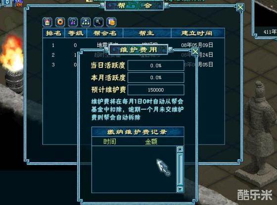 每月1日0点0分自动从帮会基金中扣除维护费用
