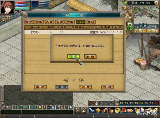 宣战:宣战需要攻击方帮会的帮主去开封城帮战管理员(348:271)处申请对其他帮会进行帮会战。宣战需要消耗一定的帮会资金。
