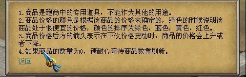 3)商品不能交易,不能爆出,不能丢弃,只能卖给跑商NPC。