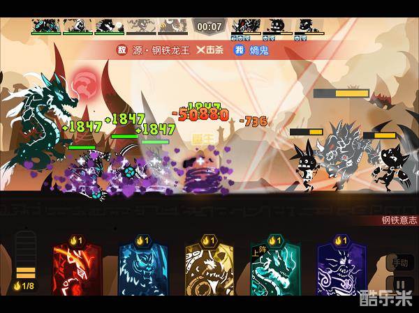 先来看看部落冒险里“钢铁意志”关卡中的BOSS——源·钢铁龙王的战斗场面吧: