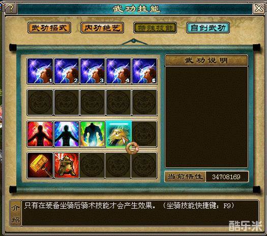5.未装备坐骑时使用骑术技能时,会提示您当前没有坐骑。