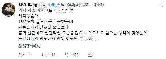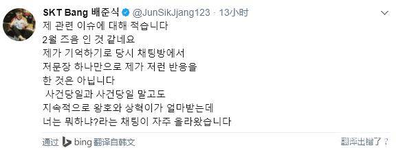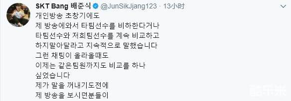 韩网友3:其实就是洲际赛输了才这么没事找事喷的,还当什么职业选手啊,直接成idol(爱豆)了。Bang还是别用SNS了,这个直来直去的性格。