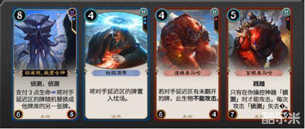 侦测-部分生物和法术可以直接翻开对手延迟区的牌,对手延迟区的牌被我方翻开后,将失去从延迟区打出的额外效果,相当于变成一张直接打出的牌。