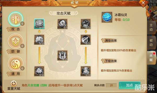4.1.1:角色天命觉醒(四转)后立即获得10点天赋点数,此后每提升一级角色等级获得1点天赋。