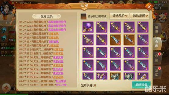 挂机了一天发现背包虽然出了橙装,但是都是重复的怎么办?我们可以好好的利用仙盟的捐献装备,把重复的装备捐进仙盟仓库获得贡献点,就能用对应的贡献点换到你需要的装备了,平时多多留意仙盟有什么大家放进去的好东西吧~