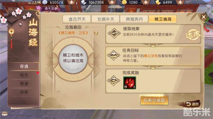 精卫衔微木,将以填沧海。刑天舞干戚,猛志固常在。同物既无虑,化去不复悔。徒设在昔心,良辰讵可待。《精卫填海·之五》沧海桑田任务的解锁条件是所有经脉到达6重。经脉修炼在技能修炼里面,修炼经脉需要清灵丹。挖藏宝图或者建功立业可以获得清灵丹。清灵丹不足的时候,也可以用盟贡修炼经脉。轩辕传奇手游有6中经脉,分别是任脉、督脉、冲脉、带脉、阴维、阳维,全部升级到6重。说难也不难,说简单也不简单,需要日积月累来达成。