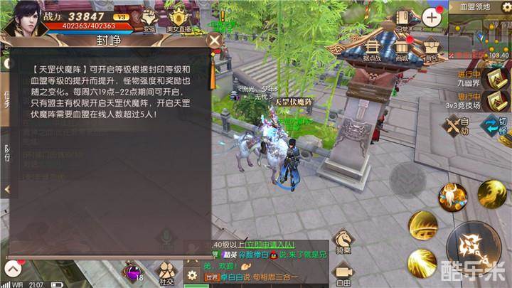 解锁后,获得接取任务的线索。线索提示是:总耗时30分钟内通关天罡伏魔阵。每周六19点-22点期间,血盟盟主到血盟领地NPC封峥处,可以开启天罡伏魔阵副本,开启后血盟成员可以通过活动推送或寻找NPC封峥进入副本。勇士40级后可以参加,每周可以挑战天罡伏魔阵一次。勇士想要30分钟通关,首先要看血盟实力,选择副本等级和难度,同时血盟成员要团结,听指挥。如果血盟实力比较强,基本15分钟左右就可以通过70级困难模式了!
