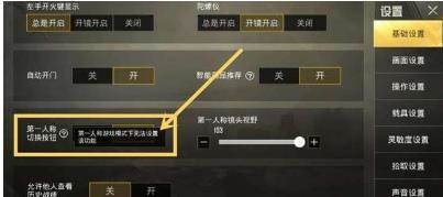 相信不少人已经发现小编图片中左下方的人称切换按钮了,不得不说官方在这方面考虑的非常周到,打开设置按钮进入基础设置页面,往下面翻就能看到一个第一人称切换按钮,把它打开就能在第三人称模式下随意切换人称视角啦。