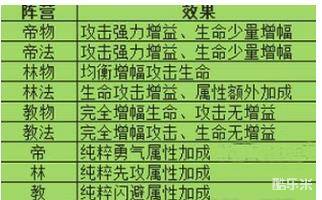 阵容加成表