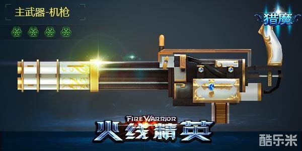 武器描述:全新圣光系列武器之一,机枪型主武器加特林-圣光。 承袭圣光系列的特色,枪身以唯美典雅的金镶蓝宝石装饰。是攻击特殊生物专用的猎魔武器。仅可以在挑战商城以挑战券兑换。只有经历过试炼的勇者方可获得。是一种荣誉的象征。