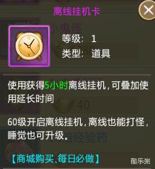 离线挂机卡:使用后可增加离线挂机时间