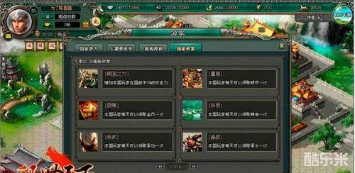 国家,对于三国勇士而言,不仅是一个战斗单位,更是一种誓死守护的信仰,《乱世天下》中亦是如此。一旦国家建立,就意味着守护和扩张。游戏中在完成关卡“黄巾乱起”并且主城达到10级后,玩家便能选择国家。选择国家后将无法更改,并且玩家会自动迁移到国家对应地区,同时会随之开放官职系统和天下系统,今后甚至会影响到军团选择和征战组队。因此一旦选定,就要誓死效忠,在选择的时候玩家务必三思。
