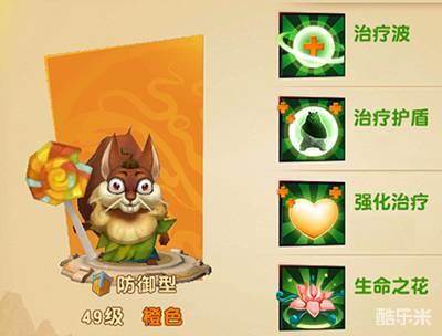 可以带两个伙伴的场合则加上我们萌萌哒的小松鼠,她四个技能都是为治疗而生,虽然是很容易获得的普通伙伴,奶量却不容小觑。