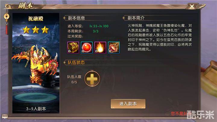 祝融殿55级开启的副本,算是轩辕传奇手游中比较难的副本了。队伍职业的选择非常重要,一个不小心就不能三星通关了。建议队伍选择药师、刺客、战士。副本里面是不能使用任何药物,所以除了爆魂就靠药师的加血技能了。祝融殿第一个BOSS还好,刺客注意输出,药师注意加血,战士抗伤害就好。第二个BOSS是最变态的,攻击力强,还有指定型攻击,不可躲。一个不小心要是逮到了残血的勇士,会被一套带走。值得庆幸的是这个BOSS的血量并不多,快速击杀,刺客输出,药师加血,配合好战士抗伤害,基本上没有任何问题啊。
