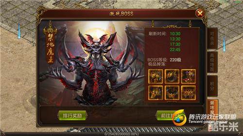 在玩家的升级过程中,在【上古禁地】就能碰到200级BOSS【禁地魔王】,在玩家击杀后即可获得丰富的掉落奖励,BOSS的刷新时间分别为10:30;13:30;17:30;22:45。