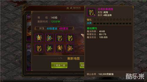 基础属性:魔法防御40-85;物理攻击90-190;道术攻击135-325