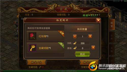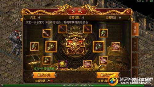 探宝一次保底必定获得经验丹,有概率获得高级装备!另外成为VIP每日都会有免费探宝的机会!探宝所需的宝藏钥匙需要通过购买的方式获得。