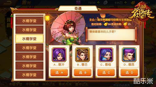 水镜学堂:知识问答题,答对可获得50元宝,答错也无妨,也可获得25元宝。