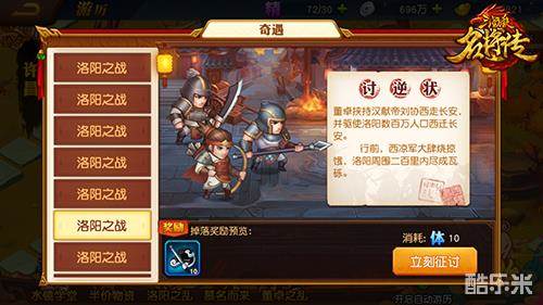 董卓之乱:战斗类事件,消耗体力战斗,可获得人物经验值和宝物精炼石(宝物强化道具)。