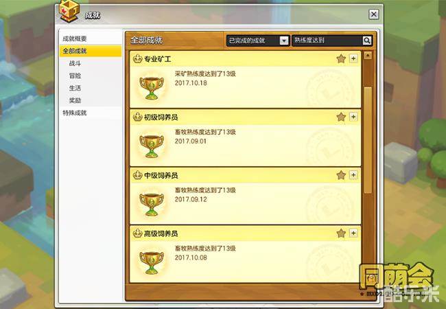 不管在生产中获取材料,还是在制作中获取物品,你都能获得经验和成就。生活技术中一共有104个成就,生产和制作成就各分一半。也就是采矿、畜牧、采集、栽培、锻造、工艺、炼金和烹饪这8项内容各13个成就。如果你连续生产及制作50天,那么你就能获得这104个成就。