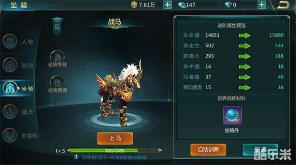 培养坐骑既可以开启霸气的坐骑外形,又可以增加属性,真可谓一举两得。