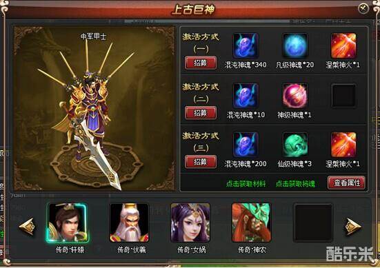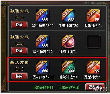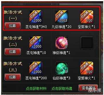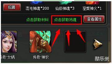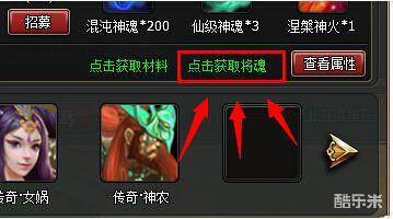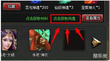 1> 点击上古巨神面板<点击获取将魂>绿色超链文字,打开将魂面板
