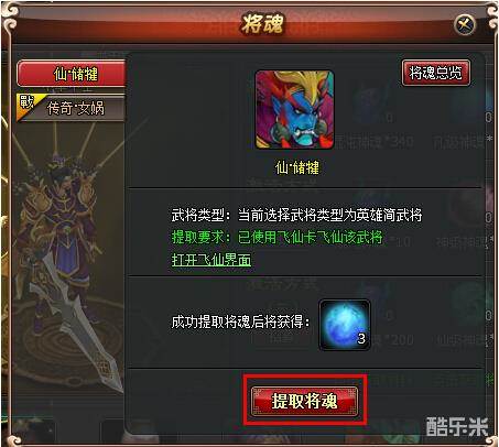 3> 点击提取将魂按钮,将获得对应数量的仙级神魂