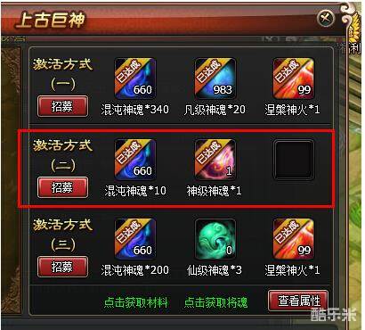满足3种激活方式中的任1种方式后,即可点击招募按钮招募上古巨神了!