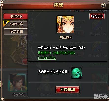 提取说明:提取将魂后,将重置该神识为未修行状态,神识武将的等级和训练进度等均重置为初始状态(非放逐后的召回状态)