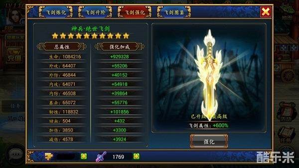 二、万能碎片给弟子加星到差不多的时候,记得给人物强化强化飞剑,特别是飞剑到了依天剑以上的时候,用万能碎片强化飞剑升战斗力高,而且战斗力加得也均匀。