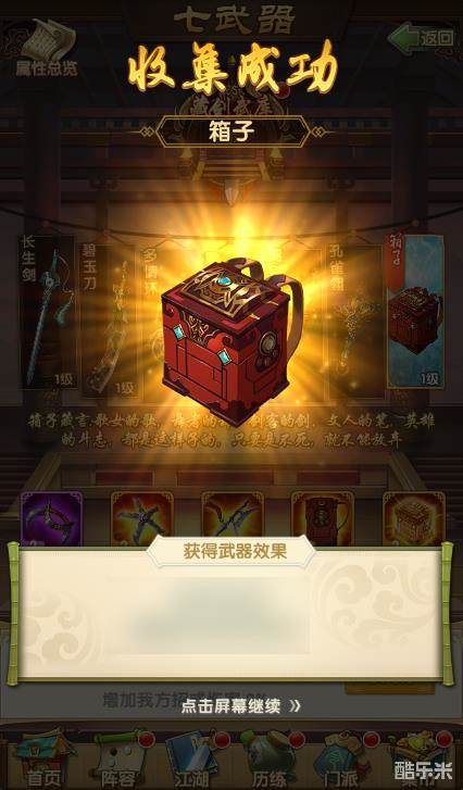 七武器再现江湖,各位掌门的功力又将更上一层楼。若是掌门想要借此机会提升战力,凌绝江湖,可千万不要错过收集和养成哦!七种武器,或许将牵引出百种不同的江湖结局……今日七武器系统正式上线,巅峰武侠RPG手游正统续作《大掌门2》请你前来体验!更多资讯,请百度搜索《大掌门2》,精彩不容错过!