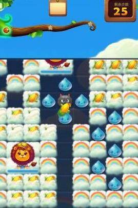 首先,玩家们进入到秋季周赛中,看到的是云朵下降的关卡,但是在云层中,出现的玉米,所以小伙伴在消除的时候,一定要注意及时的消除玉米。关卡中还有小狮子的存在,在消除的时候,一定要注意狮子的消除,消除水泡可以快速的消除小狮子。