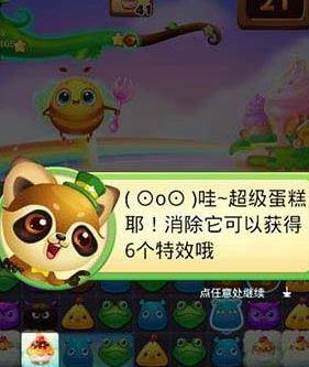 发现了超级蛋糕,一定要及时的消除,消除之后可以获得6个特效