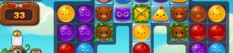 第一步:因为这一关的地形比较难消除,除了镂空,还有很多的动物被树藤缠绕,所以我们首先要把树藤的动物解开,这样才可以让动物往下落。