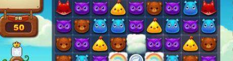 1、这一关又是彩虹关卡,看上去是不是相当的美腻呢?都是云彩弥漫,还有彩虹哦,但是对于要消除的小伙伴们来说,就有点悲剧了,因为都不清楚动物的分布,还有很多银币阻拦,别担心,小编来教你小技巧。