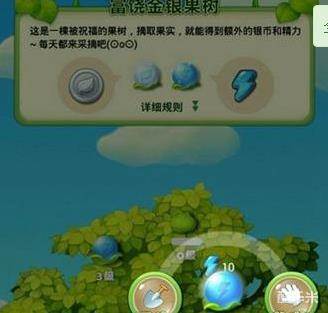 第一个方法可以通关邀请好友的方法来升级,成功邀请好友,可以升级大树,大树会自动生产果实,果实随机产生金币或精力,级别转化过程也是随机的,可能成功或不成功。