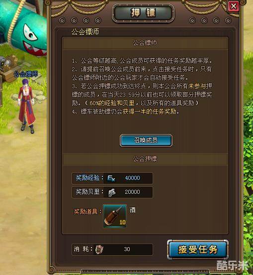 规则:1、每天19:00-21:00公会会长可消耗3000公会贡献开启一次押镖