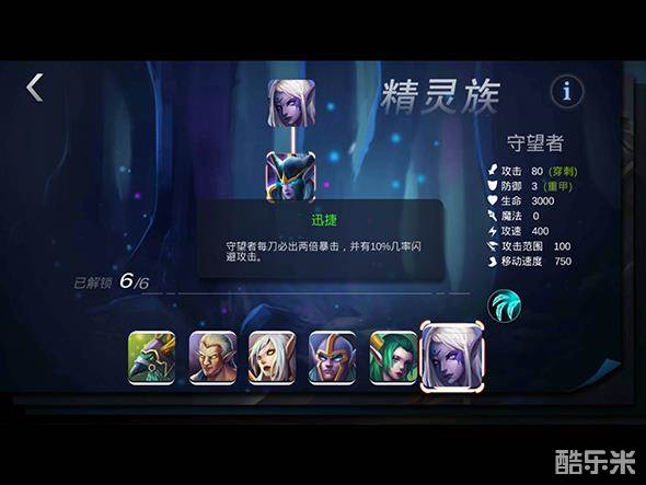 技能:迅捷(守望者每刀必出两倍暴击,并有10%几率闪避攻击)
