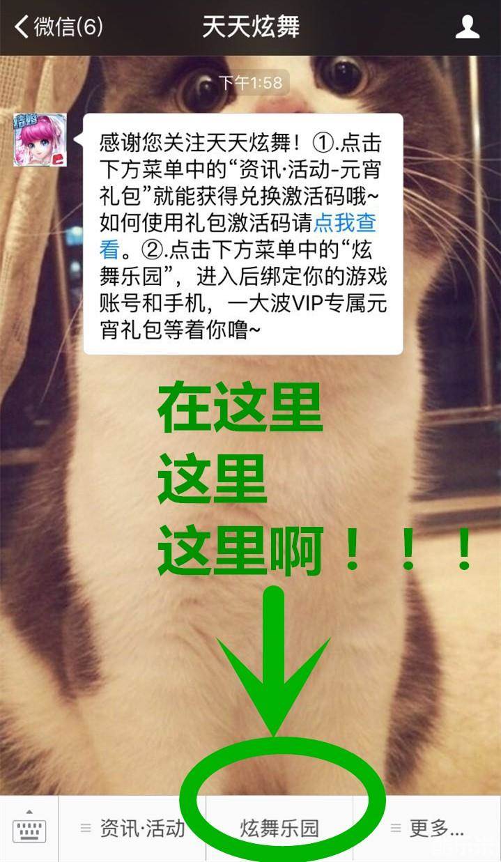 1. 关注“天天炫舞”公众号后,进入公众号,然后点击“炫舞乐园”