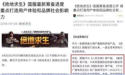 据悉,4月22日UP2018腾讯新文创生态大会当晚,腾讯于北京举办了一场《绝地求生》国服生态交流会。公布了《绝地求生》国服官方最新进展,并称已与《人民日报》、《解放军报》、《中央广播电视总台》等主流媒体达成初步合作意向,似乎意图打破此前关于“绝地求生国服无法过审”的传言。
