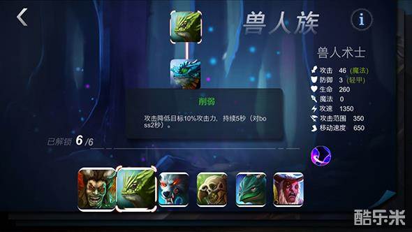 技能:削弱(攻击降低目标10%攻击力,持续5秒(对boss2秒))