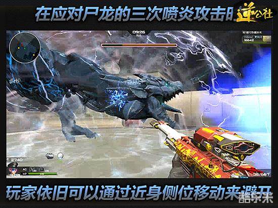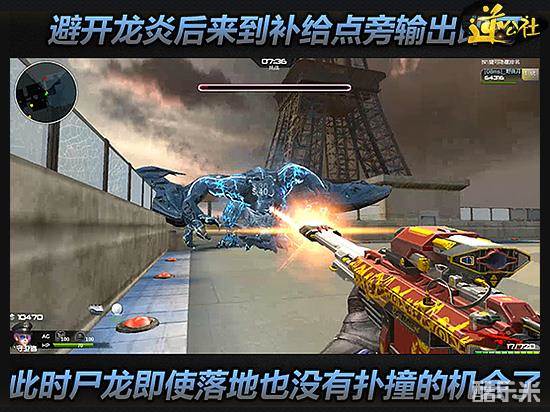 紧接其后尸龙就会开始喷射龙炎,虽然之前采取的策略是拉远距离进行躲避,但对于龙炎这一招玩家的躲避策略应是近身侧移,而这种躲避策略的好处有两点:其一为简单易学不会失误;其二就是近身方便瞄头射击打输出。