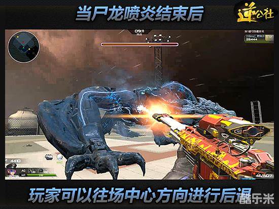 当尸龙喷射完龙炎后玩家就需要不断后撤来拉远与尸龙之间的距离了,而在后撤过程中玩家可以往场中心的方向进行撤离,至于原因则是尸龙会在接下来的时间里飞扑移动至场中心准备起飞,方向相同的情况下玩家可以更好的瞄头进行射击。