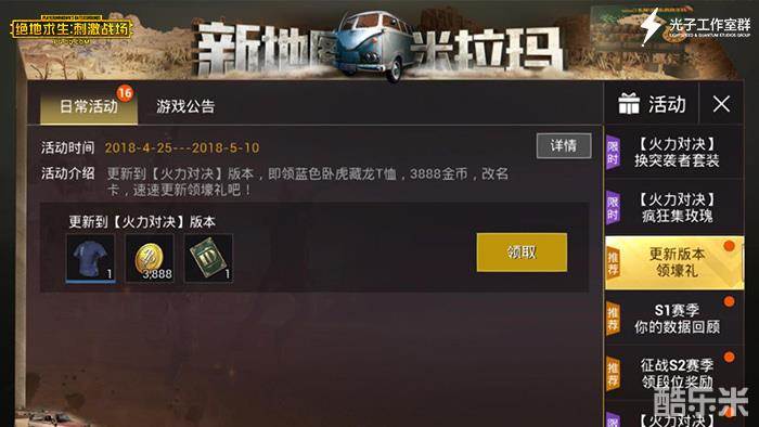 新版更新送卧虎藏龙T恤《绝地求生:刺激战场》“火力对决”来袭